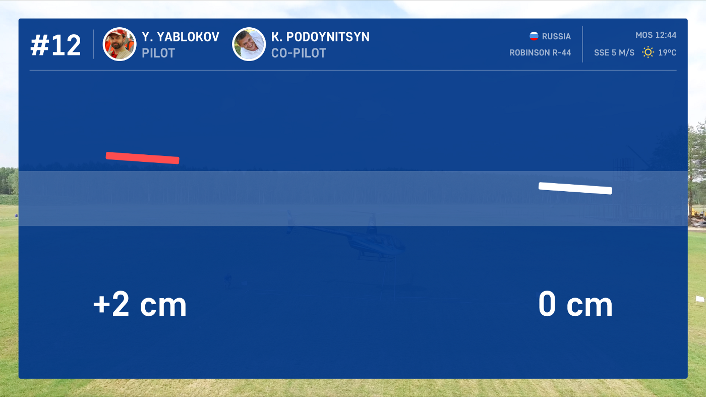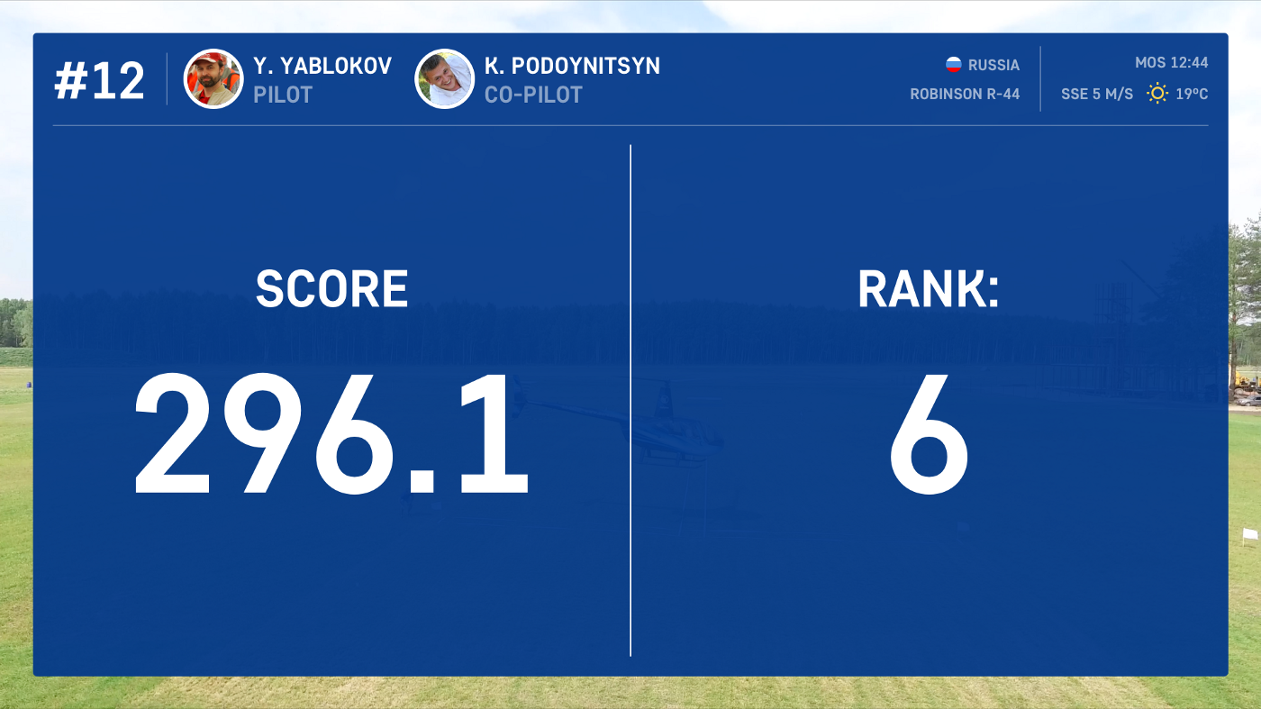 We learned by heart the massive volume with competition regulations detailing the rules of event performance. The Precision Flight event has several dozens of penalties, and we had to make sure that the interface took all of them into account – even something as small as the helicopter’s open sliding window: