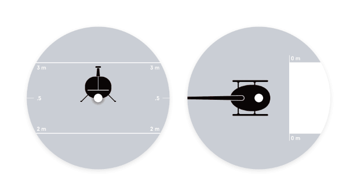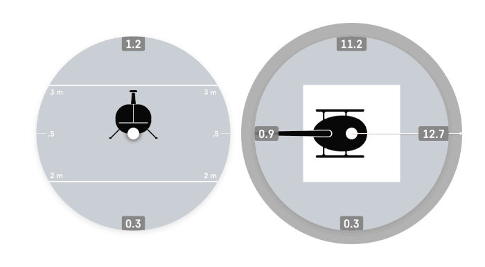 A separate stage of the event is the landing. A line with a width of 5 cm is marked on the landing pad, and the helicopter has to land on that line with special marks on its landing gear (the width of the mark is 1 cm).