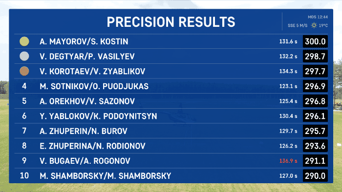Prior to the start, each team has 300 points. This is the maximum result that the team may get if it avoids all the fines. The event’s result is calculated by subtracting the sum of fines from 300 points.